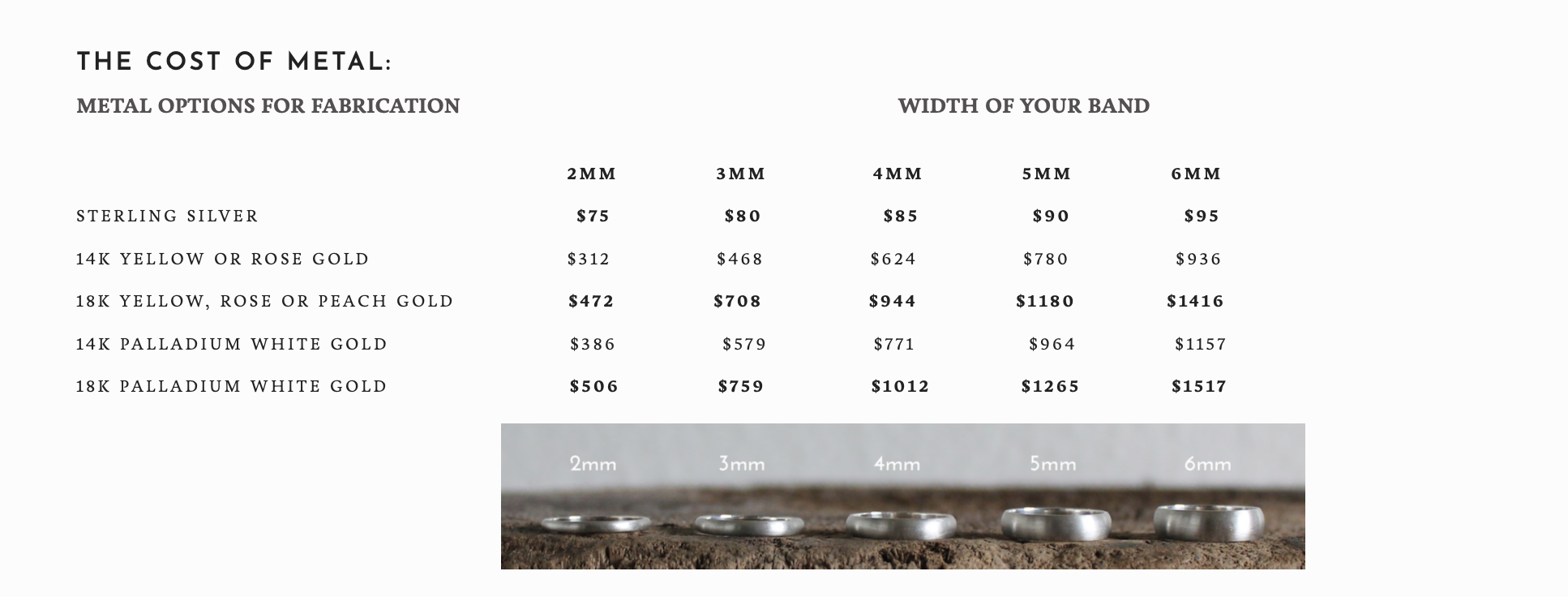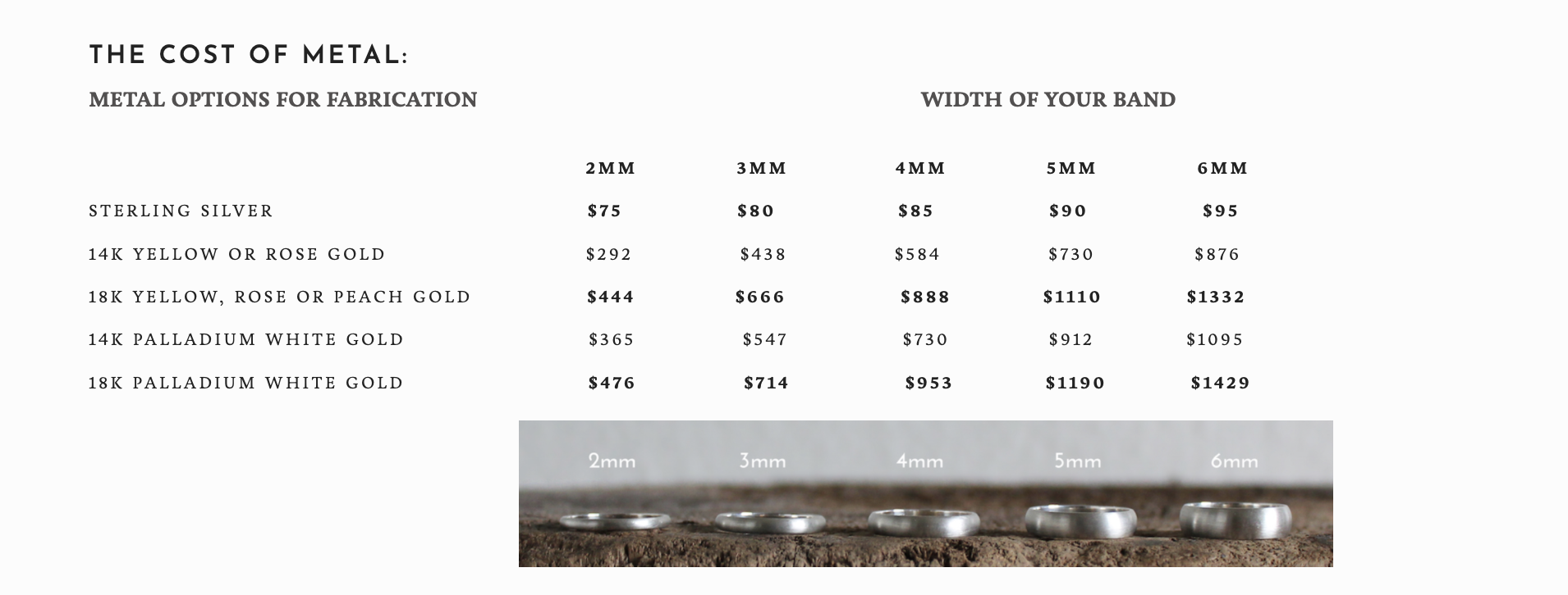 THE COST OF METAL Per rinG: