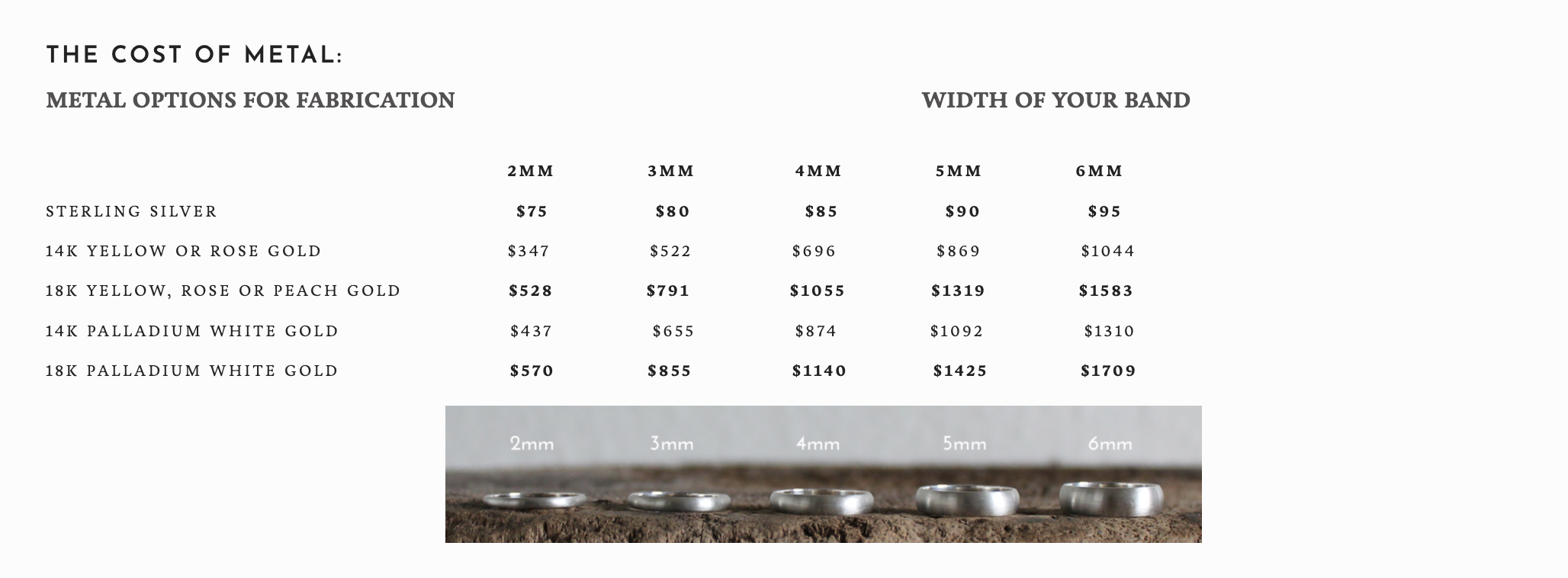Workshop Fee + Cost of Metal + Additional Elements = Total Price for Your Bands