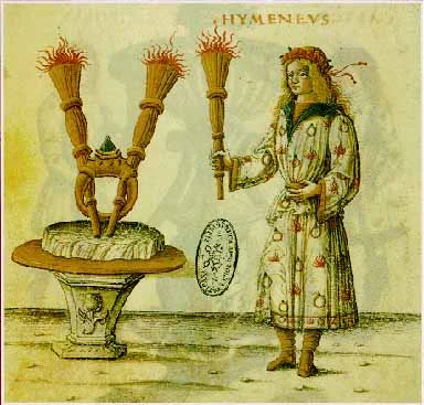 Illustration from Costanzo Sforza and Camilla D'Aragona's wedding depicting the diamond ring holding up the two burning torches.